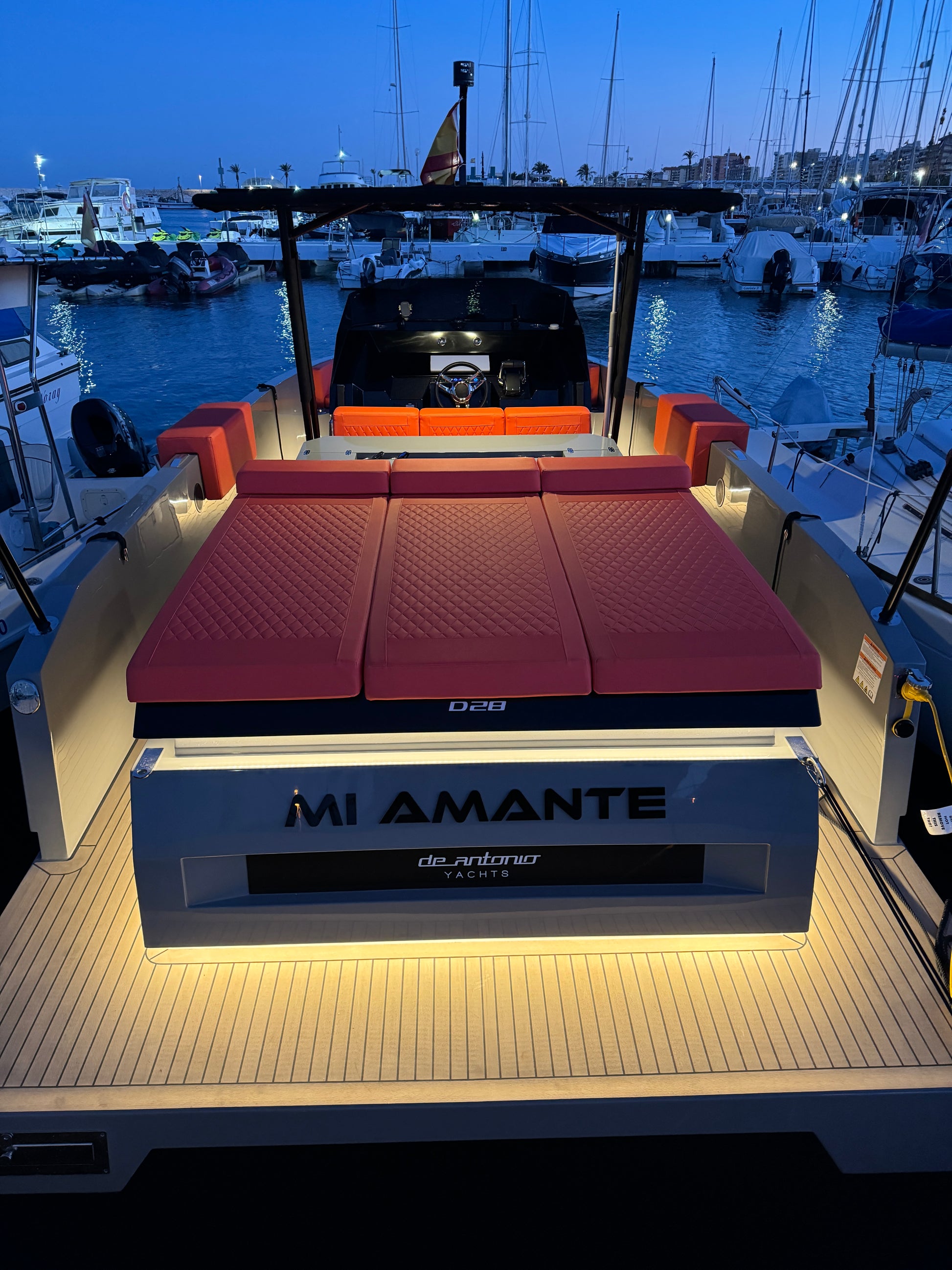 Enjoy an evening cruise while sipping drinks and watching the sun go down on board the luxurious De Antonio D28 yacht. Treat yourself to a unique and unforgettable experience on the water.
